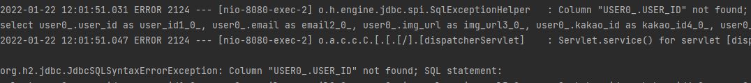 이렇게 되면 위와 같이 DB의 테이블과 컬럼이 매핑이 되지 않는 오류가 발생한다.