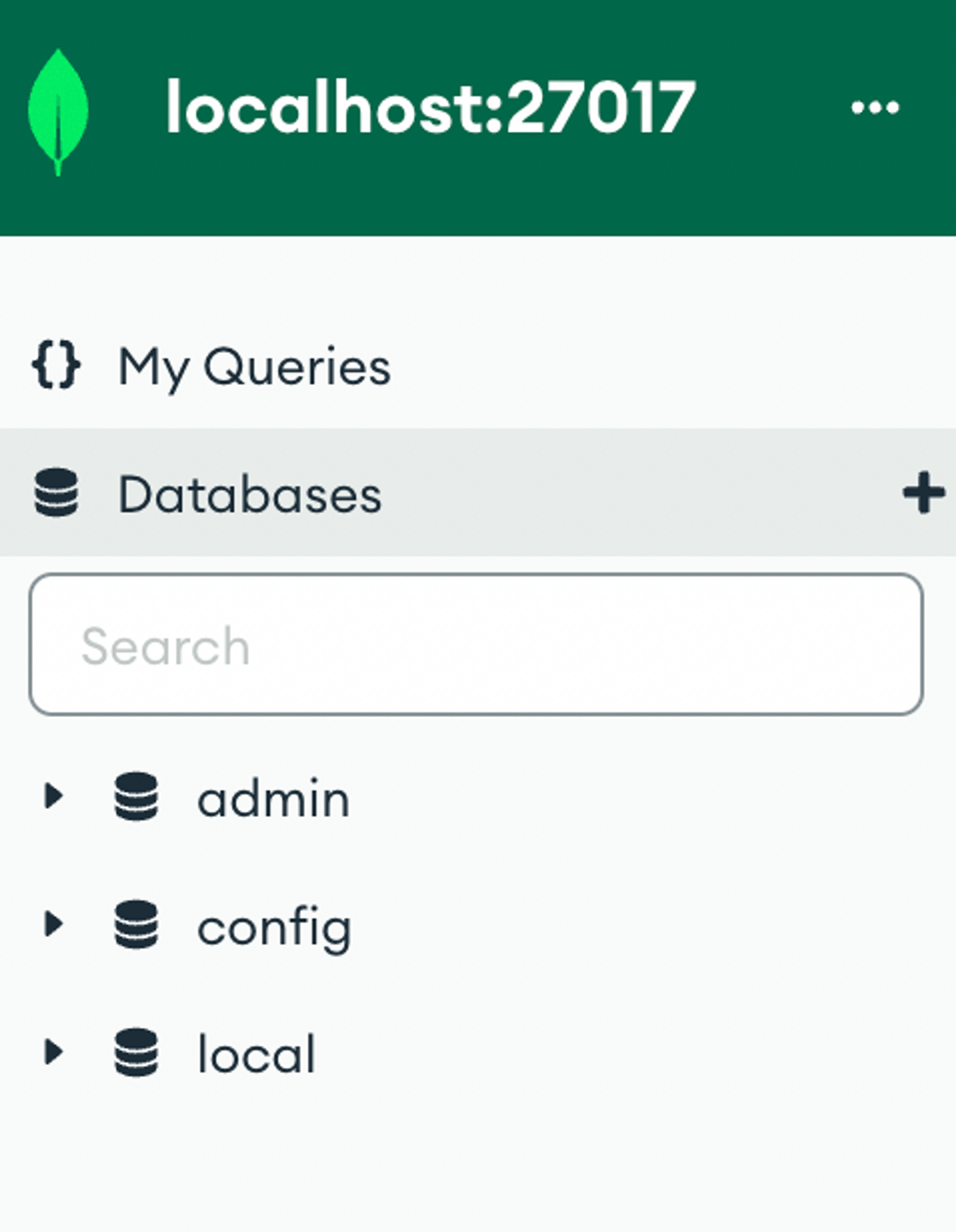 좌측 Databases의 + 버튼을 클릭하여 사용할 Database를 만든다.