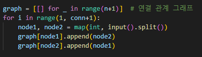 graph = [[] for _ in range(n+1)] # 연결 관계 그래프