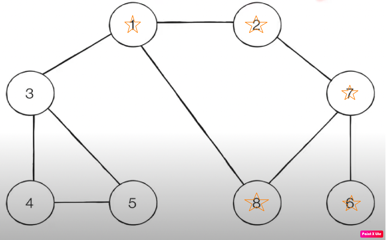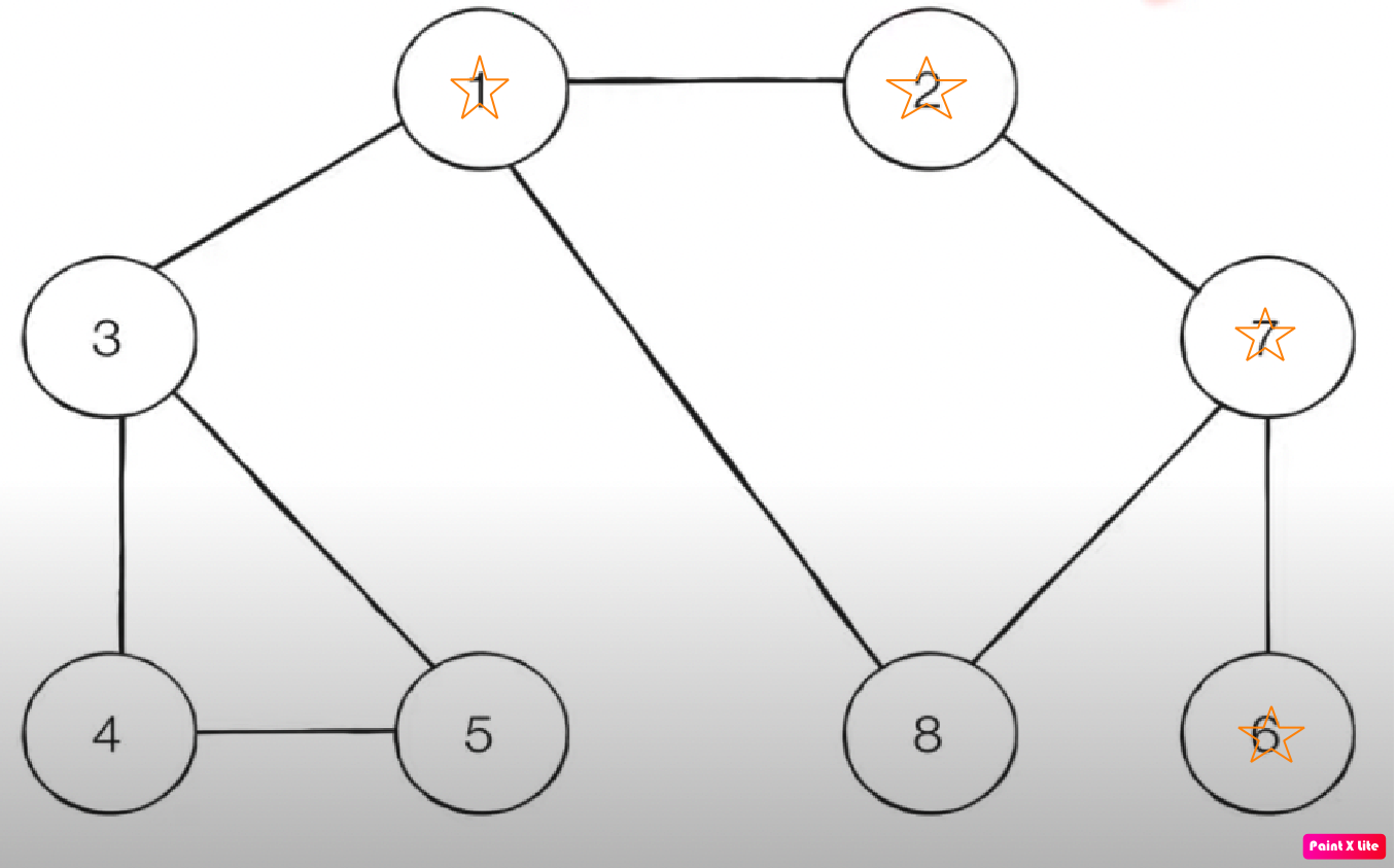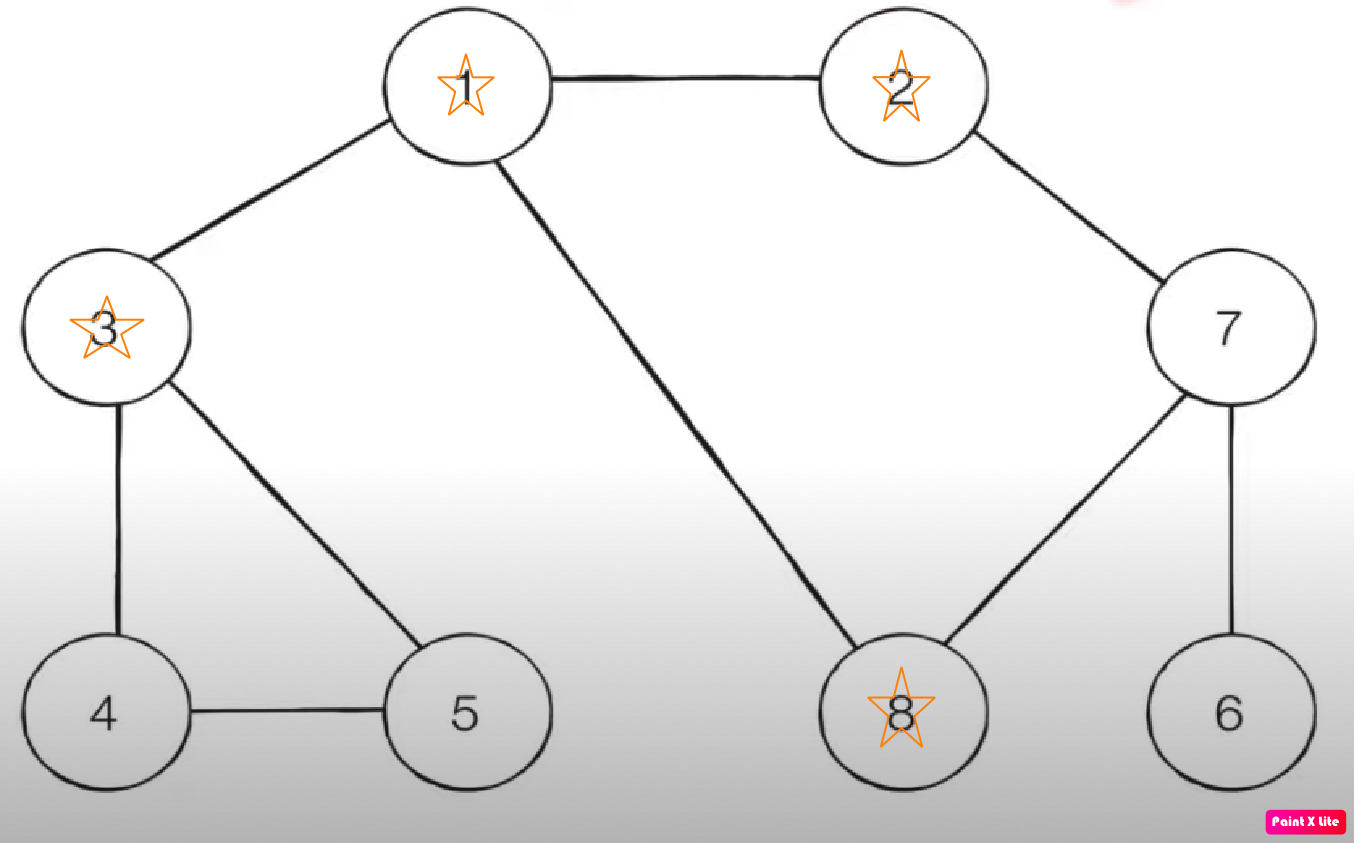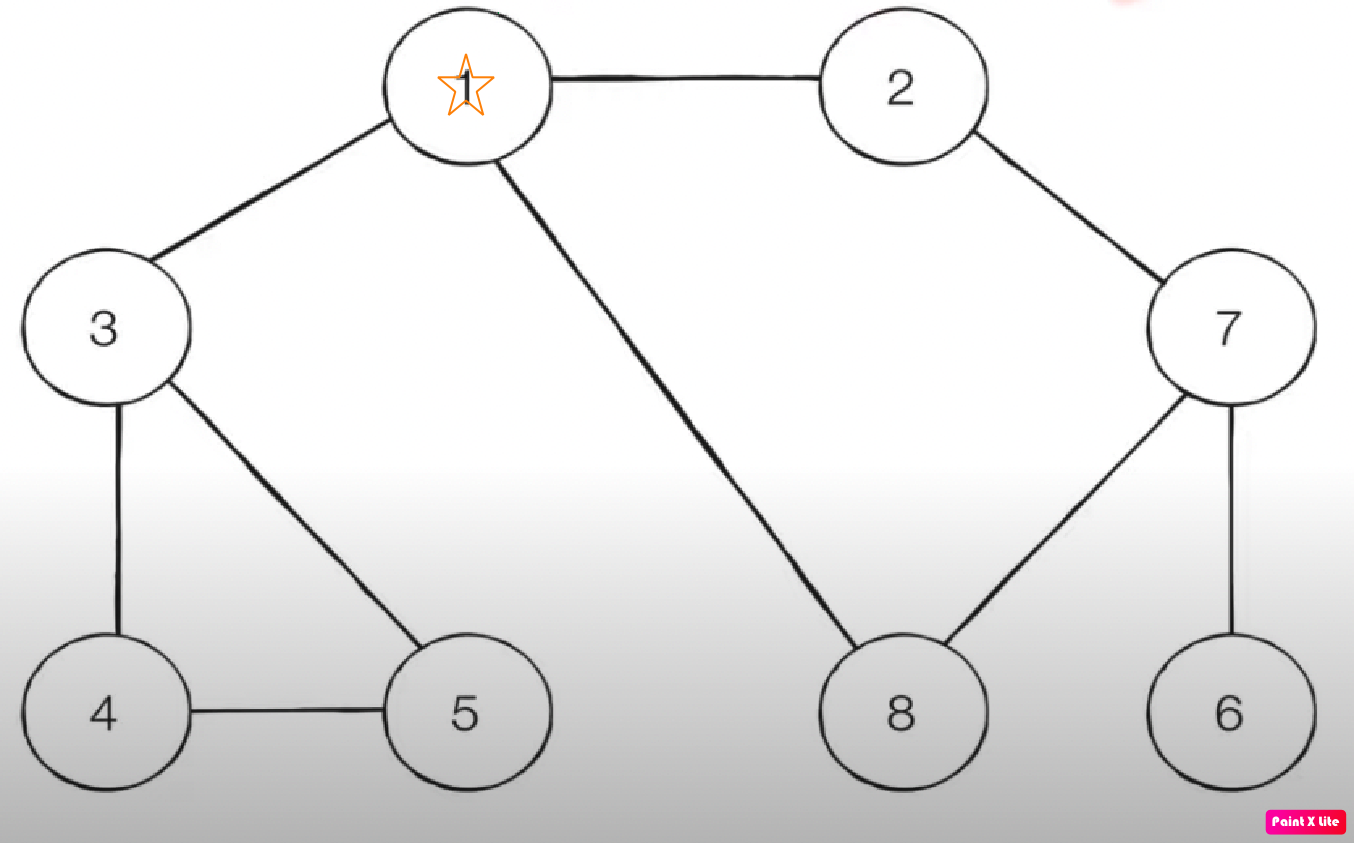다음으로 도착한 8번 노드는 1번, 7번 노드와 연결되어 있다.