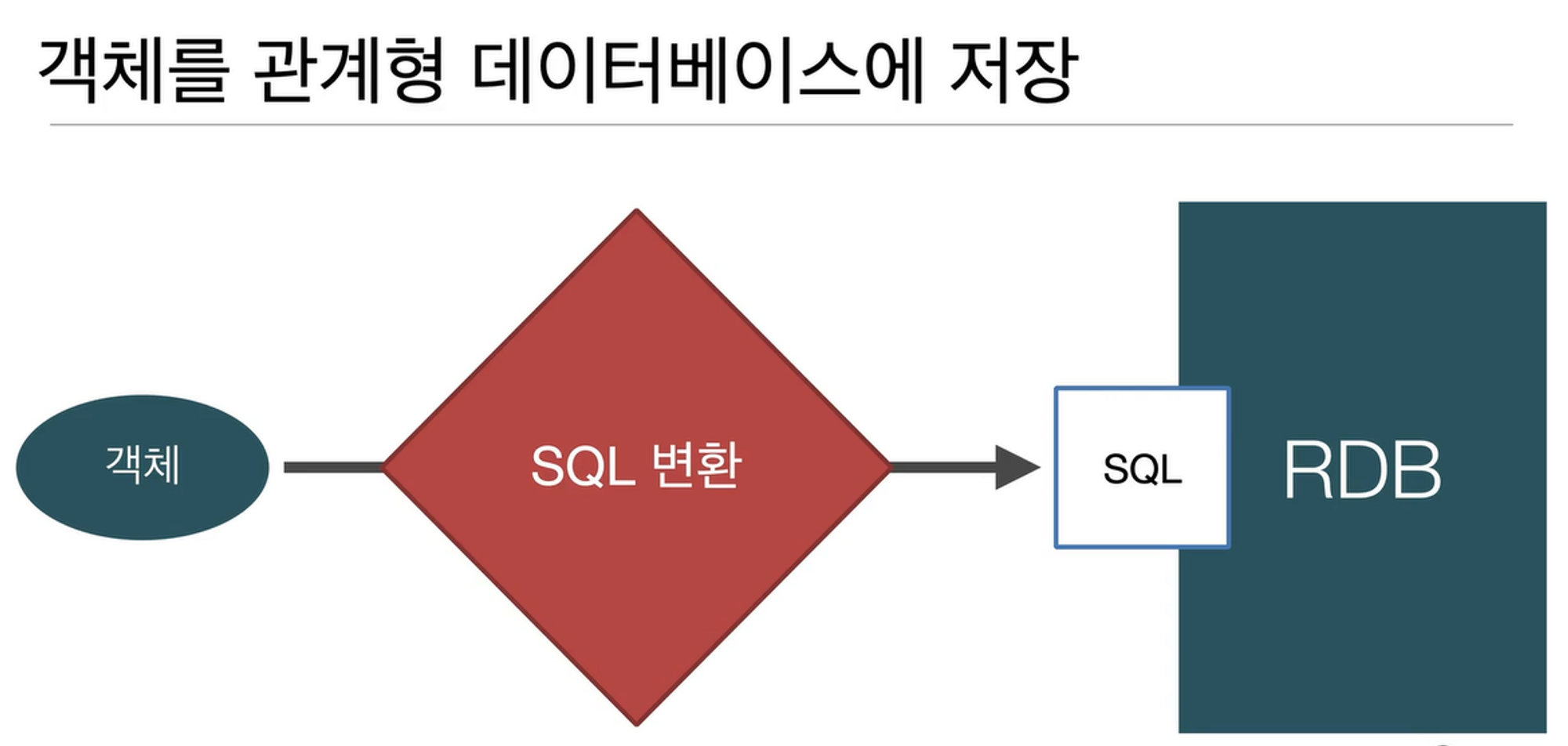 개발자가 객체를 SQL로 변환하여 관계형 데이터 베이스에 넣는 과정이다.