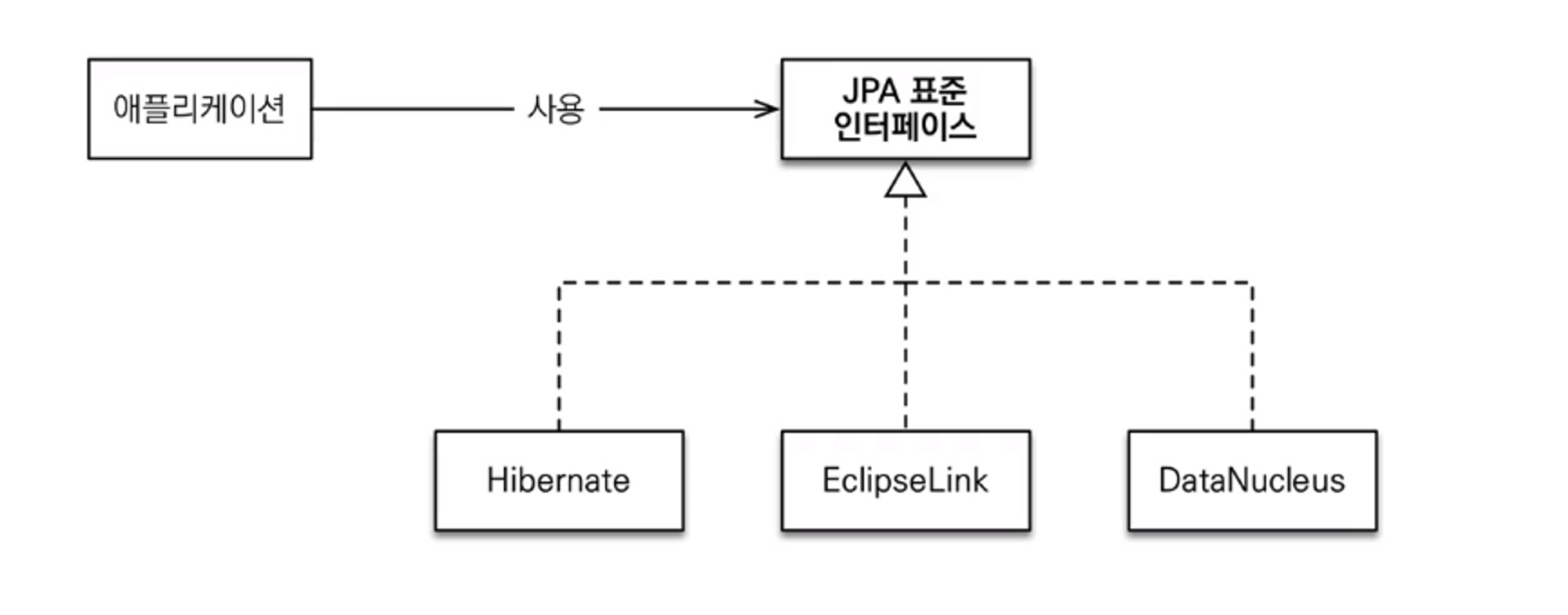 쉽게 말해 JPA는 인터페이스의 모음이라는 것이다.