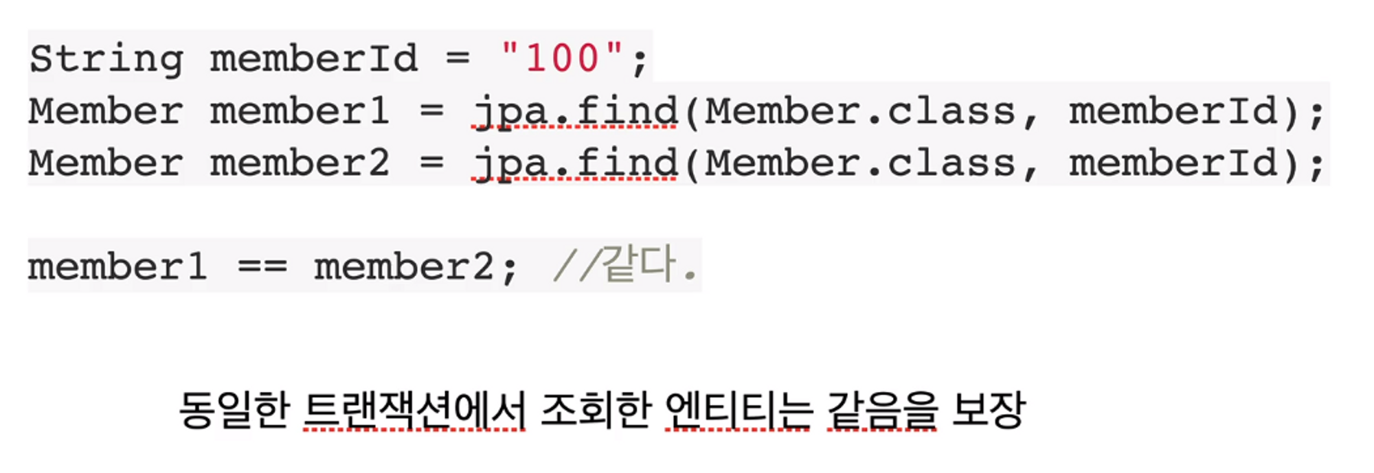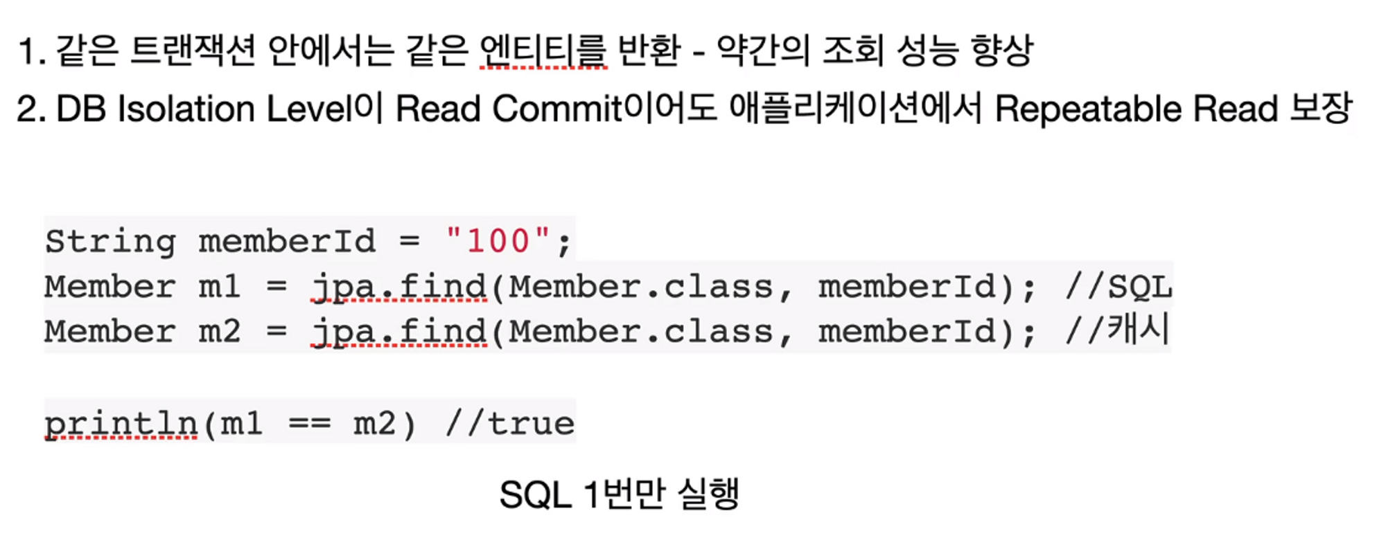 이러한 기술이 존재하는 이유는 같은 트랜잭션 안에서는 같은 엔티티를 반환하여 조회 성능을 향상시키기 위해서이다.