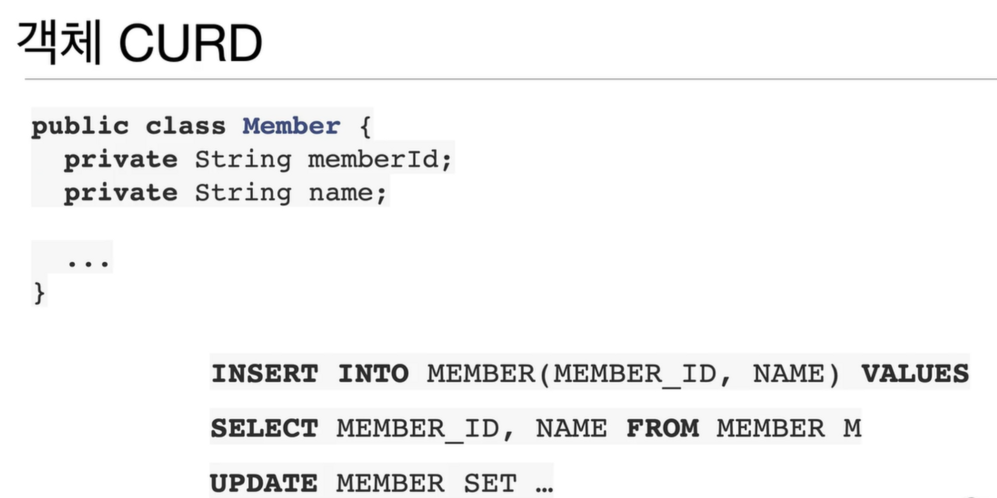 만약 Member객체를 RDB에 저장한다고 가정하자.