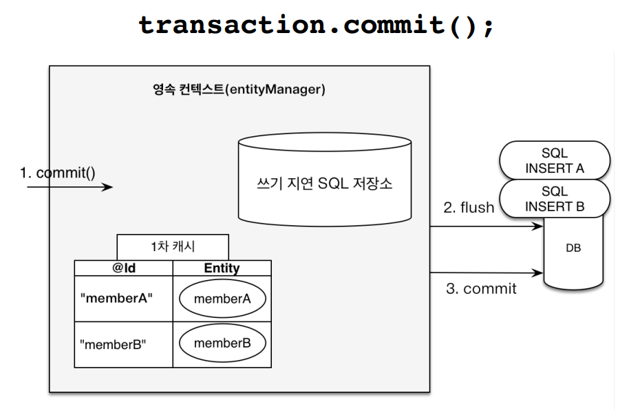 ‘쓰기 지연 SQL 저장소’에 저장되어 있던 SQL 쿼리들을 DB에 요청함으로서 수행된다.