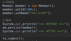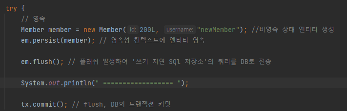- → DB저장이 아닌, 영속성 컨텍스트에 저장*