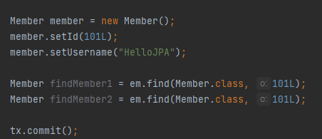 그리고 find 시에 입력받은 id값이 1차 캐시에 존재하면 그 값을 찾아 리턴해준다.