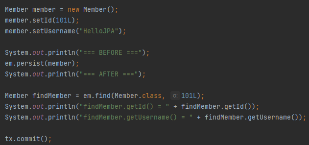 그럼 위와 같이 persist를 한 다음, find를 수행하는 코드가 있다면,