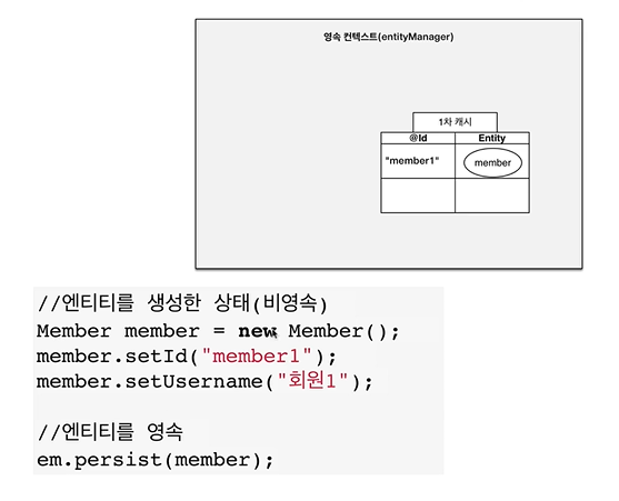 엔티티가 영속성 컨텍스트에 저장이 되는데,