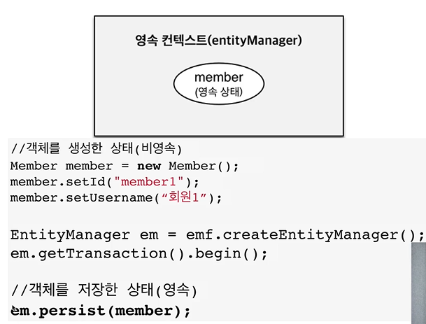 - EntityManger.persist(entity) 시에 DB에 저장한다는 뜻이 아닌 영속성 컨텍스트를 통해 엔티티를 영속화 한다는 뜻