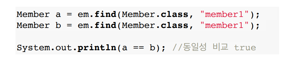 동일 트랜잭션 내에서는 영속 엔티티의 동일성을 보장한다.