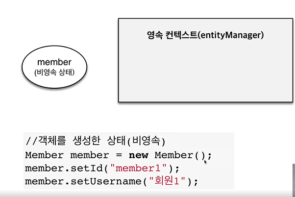 비영속 상태인 객체를 EntityManger를 통해 persist해주면 영속 상태가 되는데,