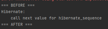 위와 같이 트랜잭션이 commit 되기 전에 직접 영속성 컨텍스트를 flush 해주는 상황에선 SQL 쿼리 수행 후 “==============”가 출력된다.