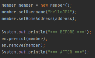 삭제는 그냥 find로 엔티티를 찾아와서 remove 해주면 끝이다.