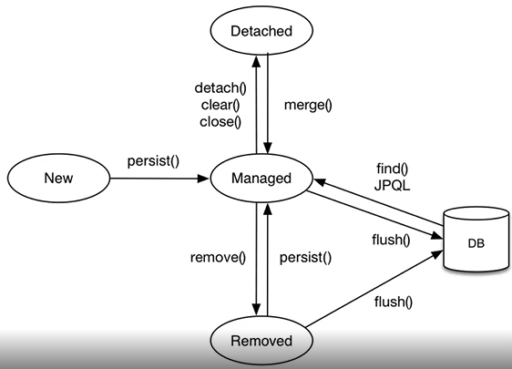 그럼 영속성 컨텍스트에 저장되는 엔티티의 생명주기는 어떻게 되는걸까?