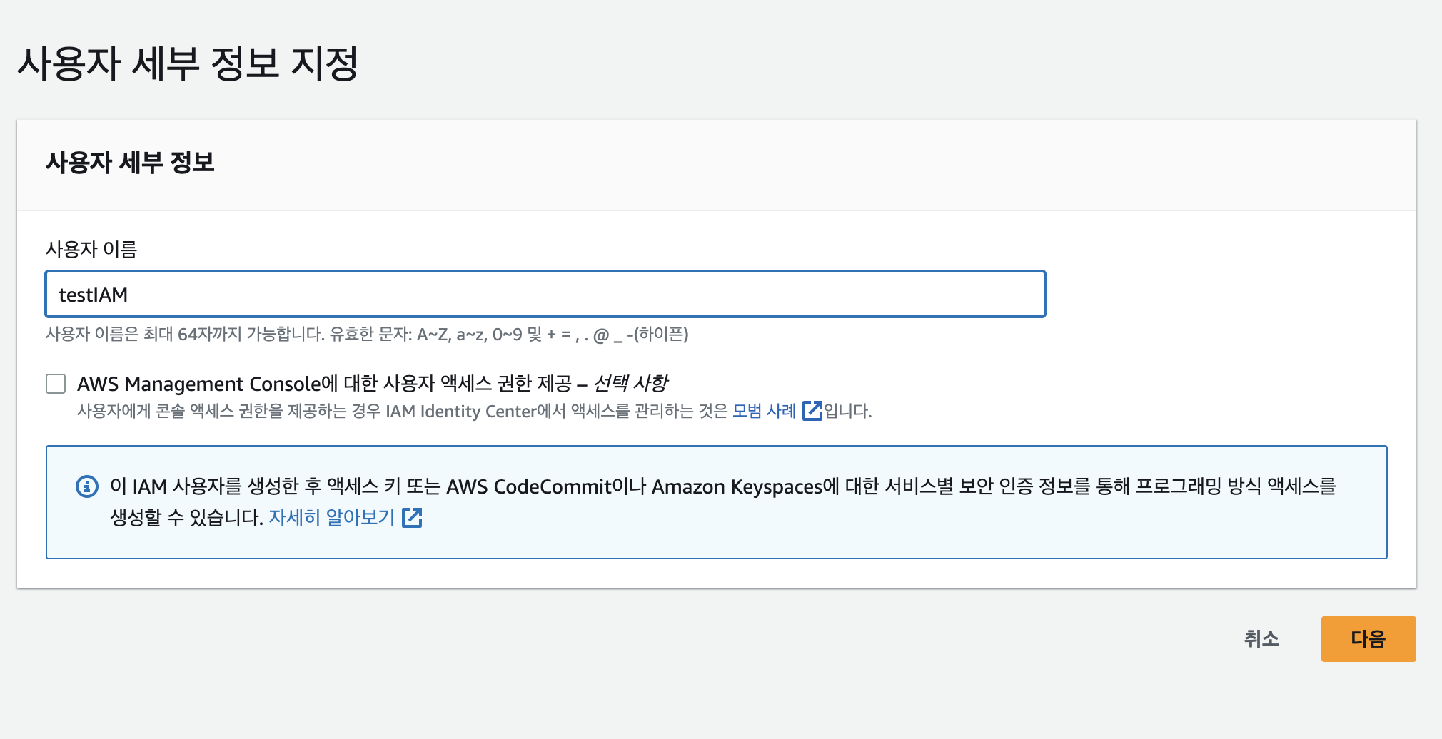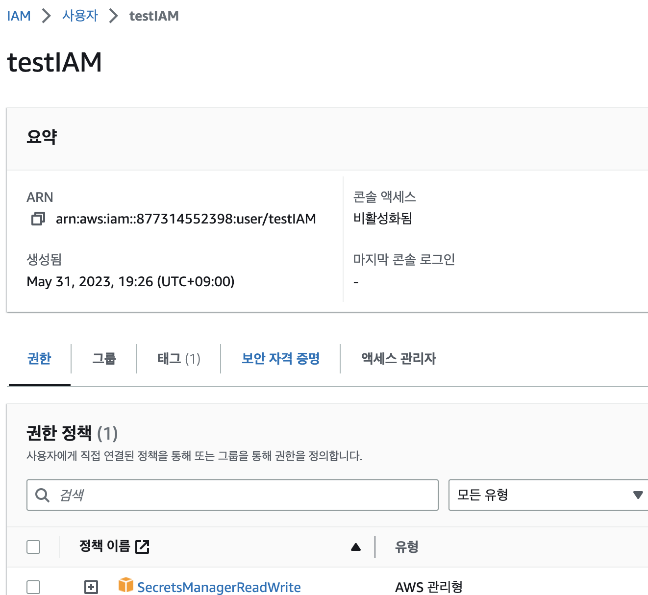 그럼 이렇게 testIAM이 생성되었는데요!