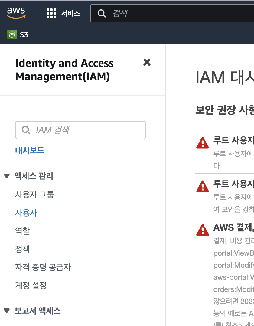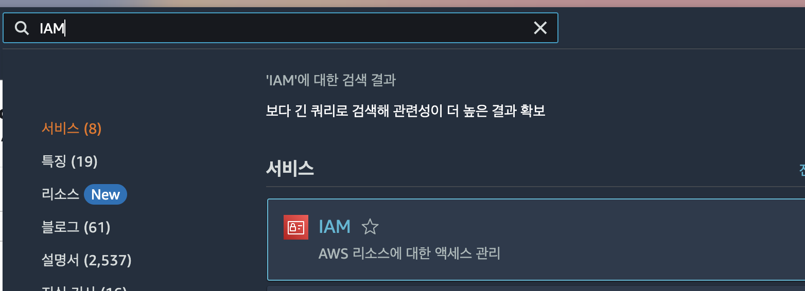 그리고 검색창에 IAM을 입력하여 접속합니다.