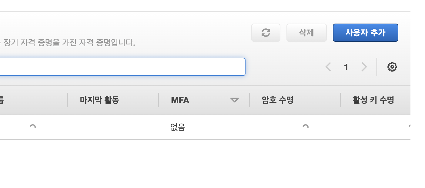 IAM에 접속하면 좌측 탭의 사용자를 클릭해줍니다.