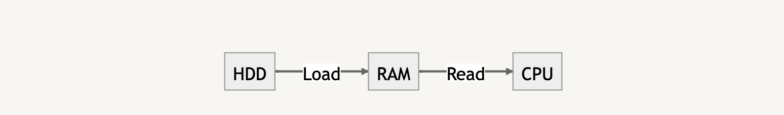 ํน์ ํ๋ก๊ทธ๋จ์ ์คํํ๋ฉด, ์๋์ ๊ฐ์ด ์ปดํจํฐ๋ ๋ณด์กฐ๊ธฐ์ต์ฅ์น์ ์ ์ฅ๋ ๋ฐ์ดํฐ๋ฅผ RAM์ผ๋ก ๋ถ๋ฌ์ CPU๊ฐ ํด๋น ๋ฐ์ดํฐ๋ฅผ ์ฒ๋ฆฌํ๋ ๊ณผ์ ์ผ๋ก ์คํ๋ฉ๋๋ค.