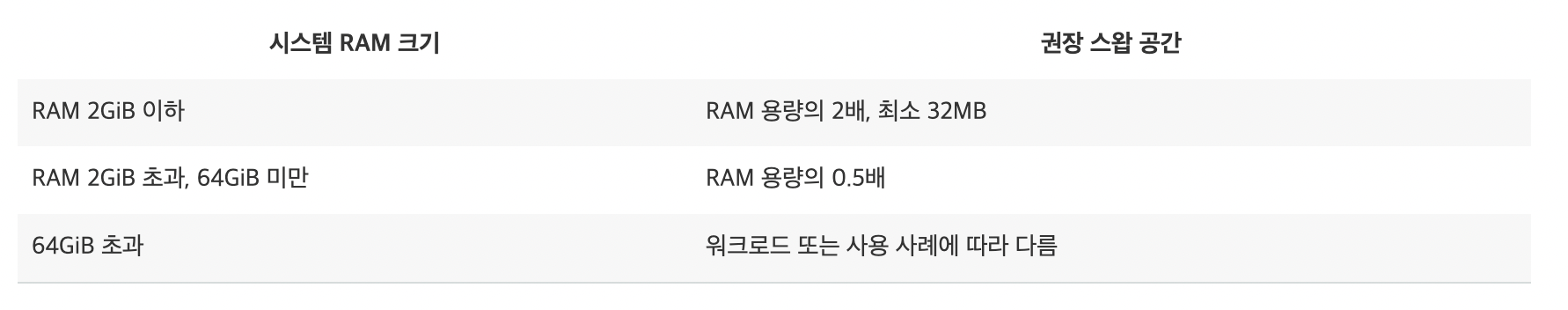 RAM이 2GB 이하인 경우 AWS에서 권하는 스왑 공간은 2배이다.