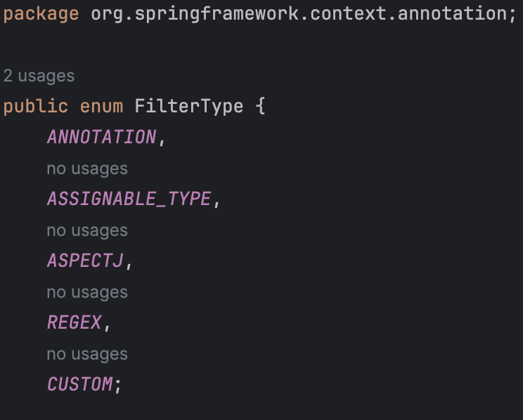 - CUSTOM : 사용자 정의 필터 로직을 구현하여 원하는 방식으로 빈을 선택적으로 탐색