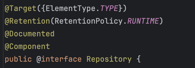 예시로 사진을 가져와본 Repository 애노테이션의 코드를 보면 알 수 있듯이