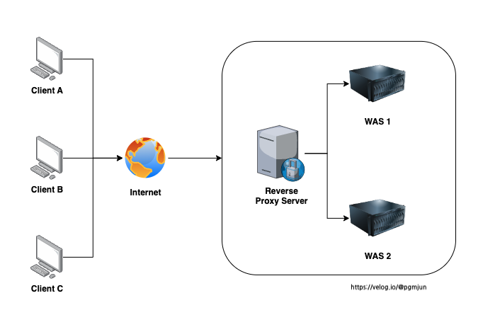 이는 WAS가 직접 요청을 받는 것이 아니라 프록시 서버가 WAS의 앞단에서 요청을 대신 전달받는 것이기 때문에 WAS의 `익명성`을 보장할 수 있는 것이다.