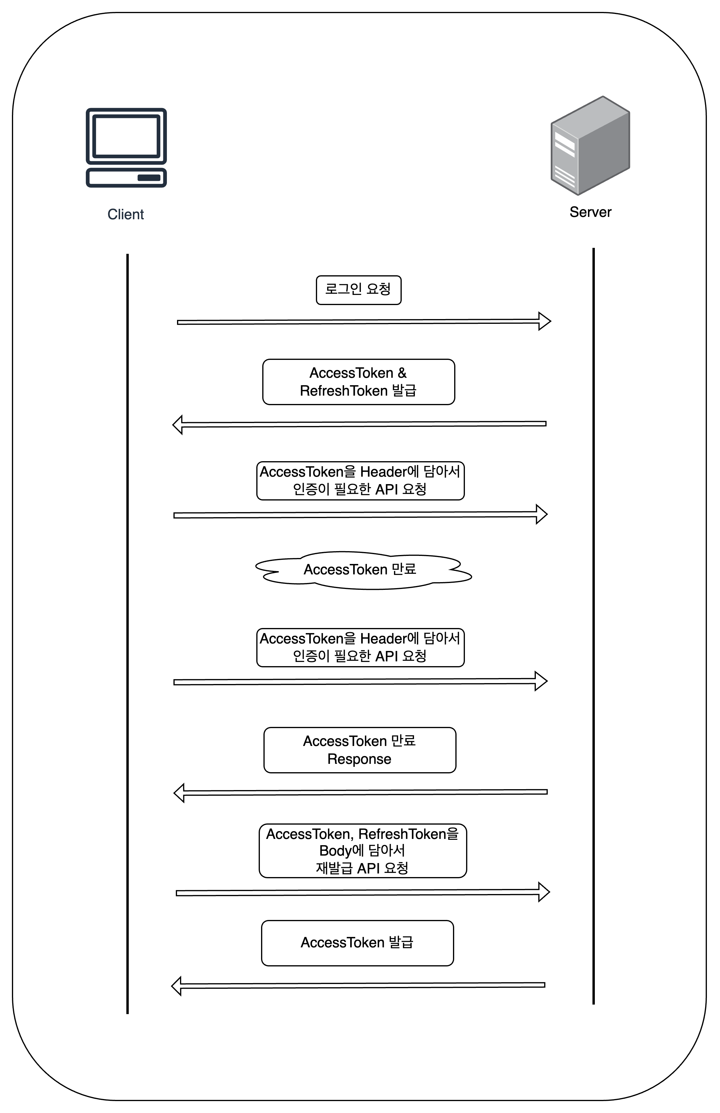 그런 AccessToken만을 통해 회원이 서비스를 사용하게 된다면, 짧은 주기마다 재로그인을 해야하고