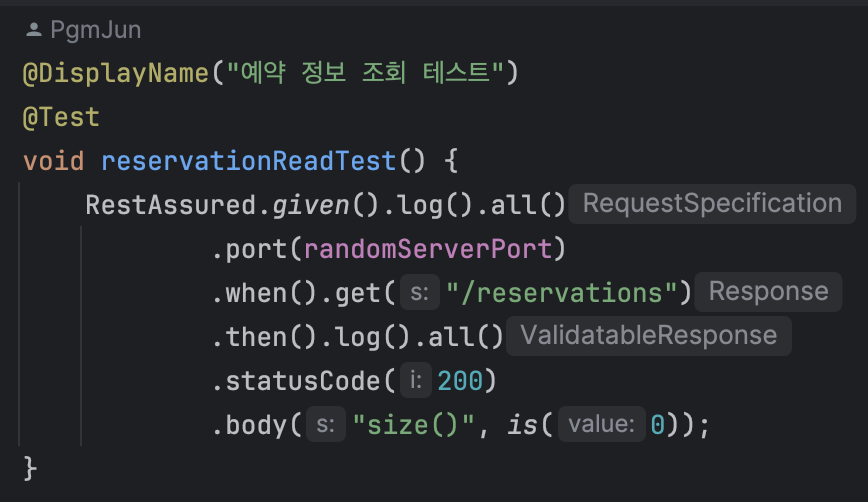 위 코드는 실제로 DB에 접근하는 통합 테스트인데,