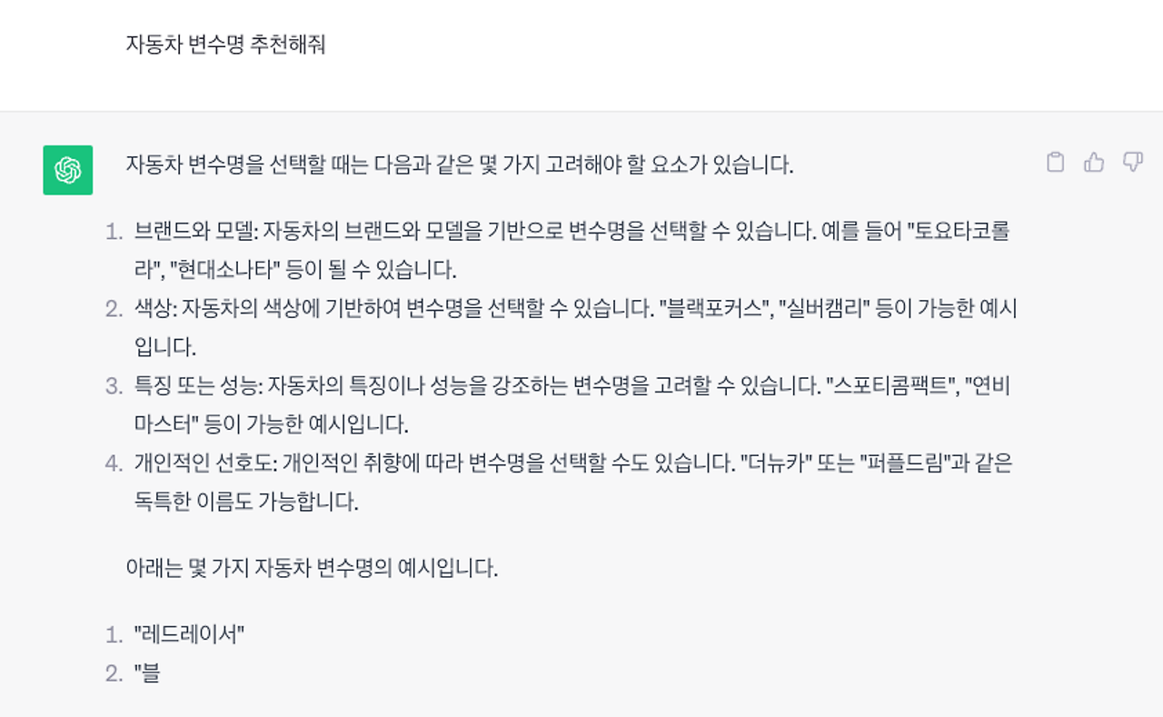 GPT 사이트에 접속하여 질문을 던질 때, 질문을 조금만 다르게 보내도 GPT가 응답하는 형식이 계속 바뀌었으며, 정해진 형식 없이 텍스트로 나열하는 형태였다.