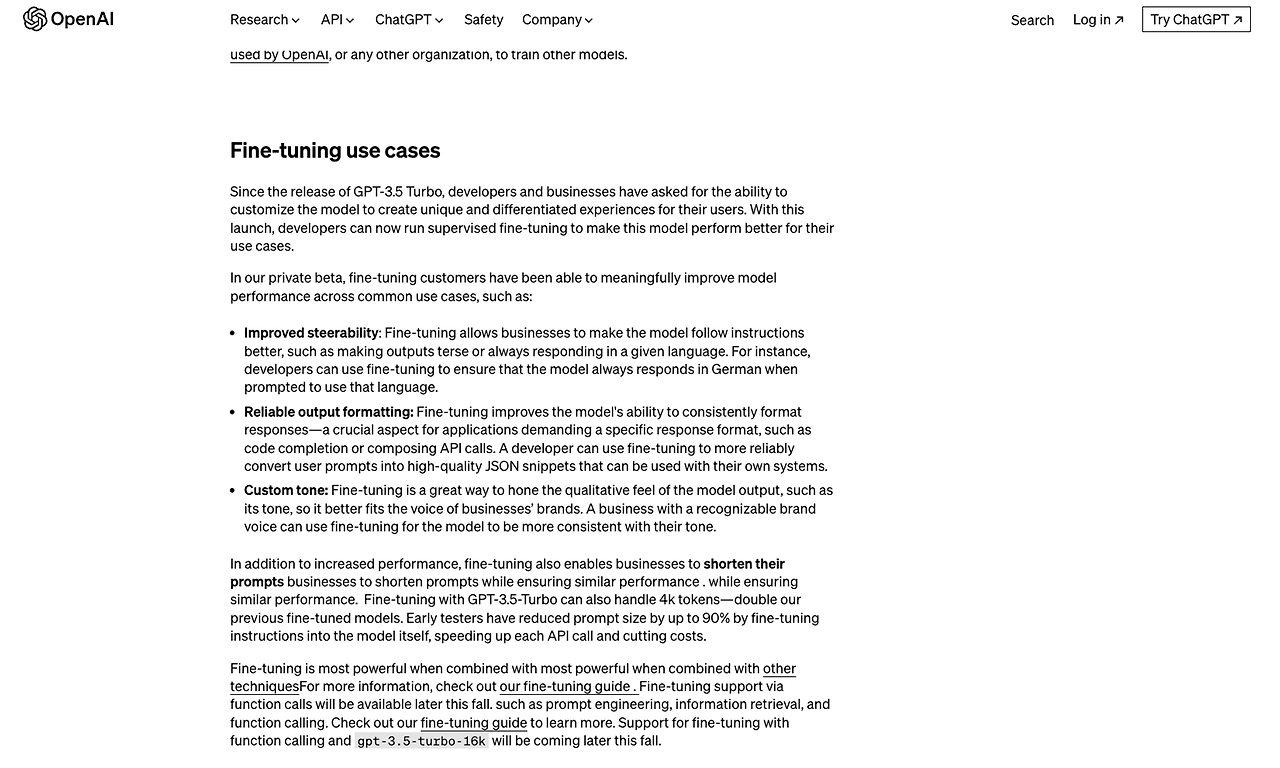 Chat Completion 방식을 API 호출 과정에서 응용할 수 있는 해결책을 찾는 과정에서 Fine Tuning이라는 것을 알게 되었다.