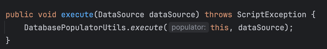 해당 객체는 execute() 라는 메서드를 통해 자기 자신(ResourceDatabasePopulator)과 dataSource를 넘겨