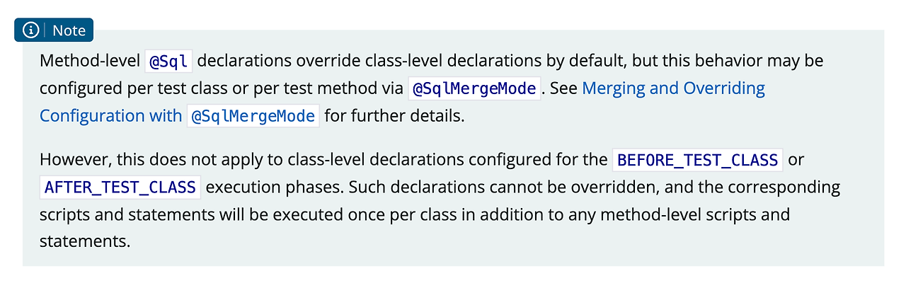 @Sql 애노테이션은 클래스 레벨 + 메서드 레벨 모두 선언되어 있다면