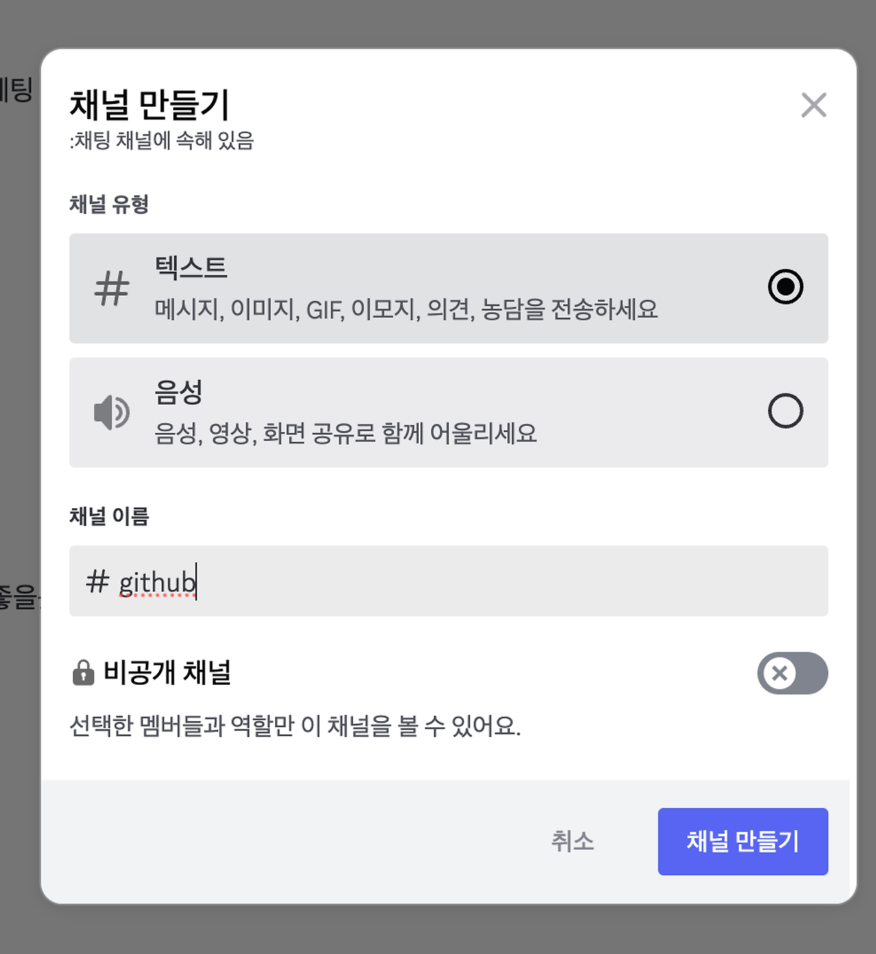 디스코드 서버에 깃허브 알림을 받을 채널을 하나 생성한다.