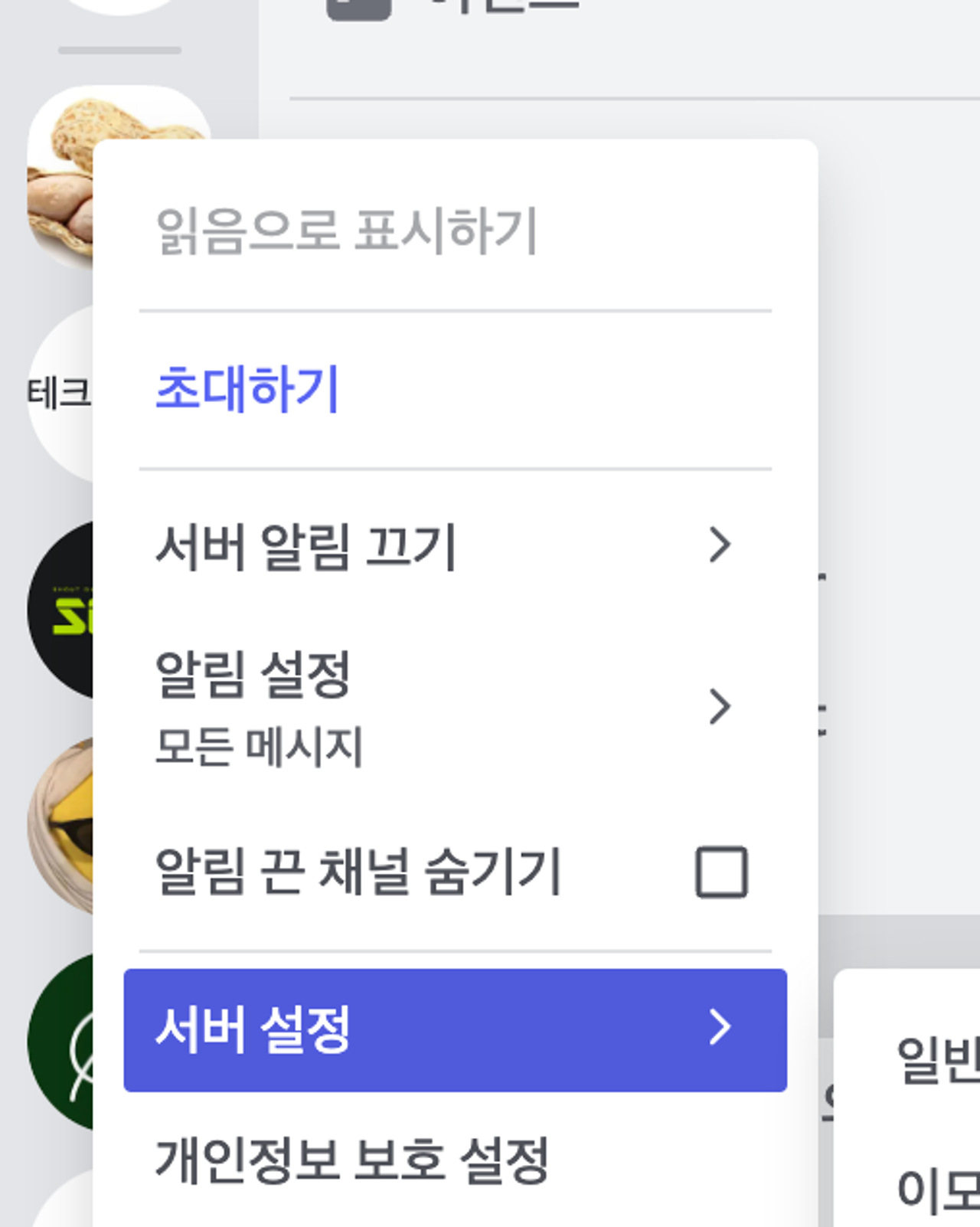 Webhook 설정을 원하는 서버의 ‘서버 설정’ 클릭
