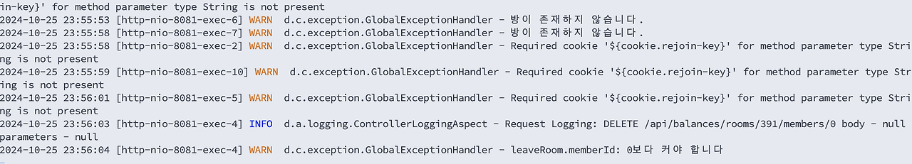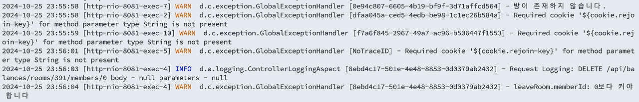 지금은 DELETE 요청과 해당 요청에서 발생한 경고 로그가 붙어있지만, 굉장히 많은 요청이 들어오고 있는 와중에 저런 문제가 발생하면 오류의 원인을 로그에서 쉽게 찾아볼 수 있을까?