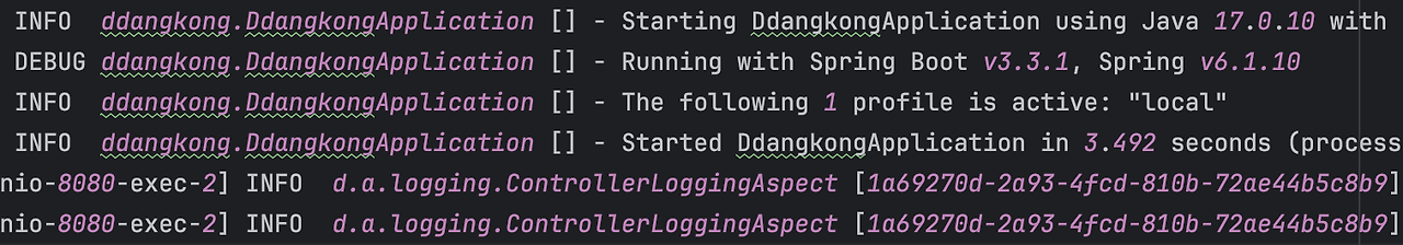 이를 해결하기 위해서 Thread Local을 사용하는 MDC를 사용하여 각 요청마다 TraceID를 갖도록 구성하고, 이를 로그 별로 함께 찍어줌으로써 로그 추적이 간편해지도록 구성할 수 있었다.