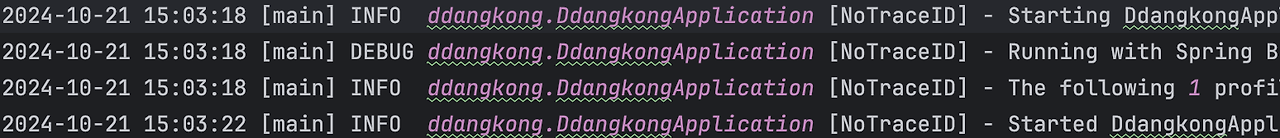 위에서 설정해주었던 [%X{traceId}] 값 설정을 [%X{traceId:-NoTraceID}] 로 변경해주면 traceId가 없을 때 NoTraceID가 찍히게 된다.