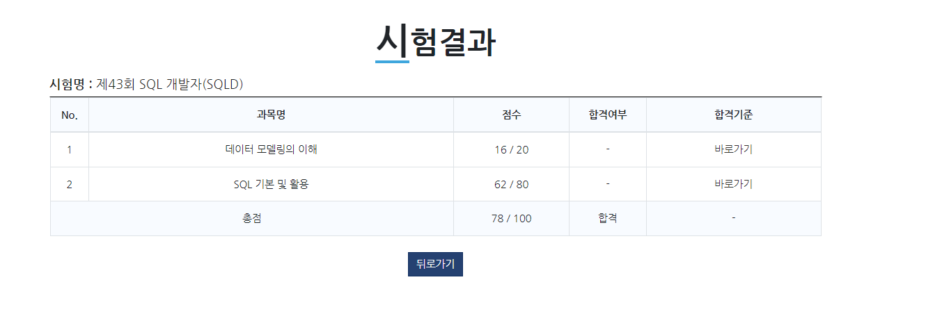 반갑습니다! 오늘은 제43회 SQL 개발자(SQLD) 국가공인 자격증 합격 소식을 들고 왔습니다.