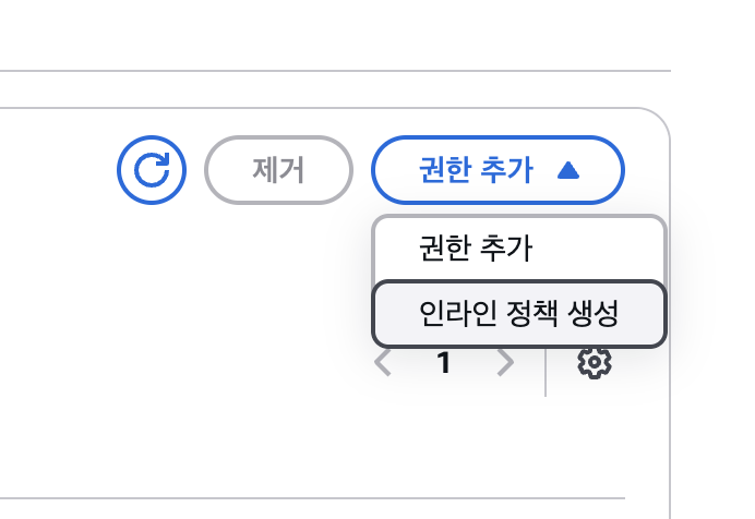 사용할 IAM에 권한 추가 - 인라인 정책 생성 선택
