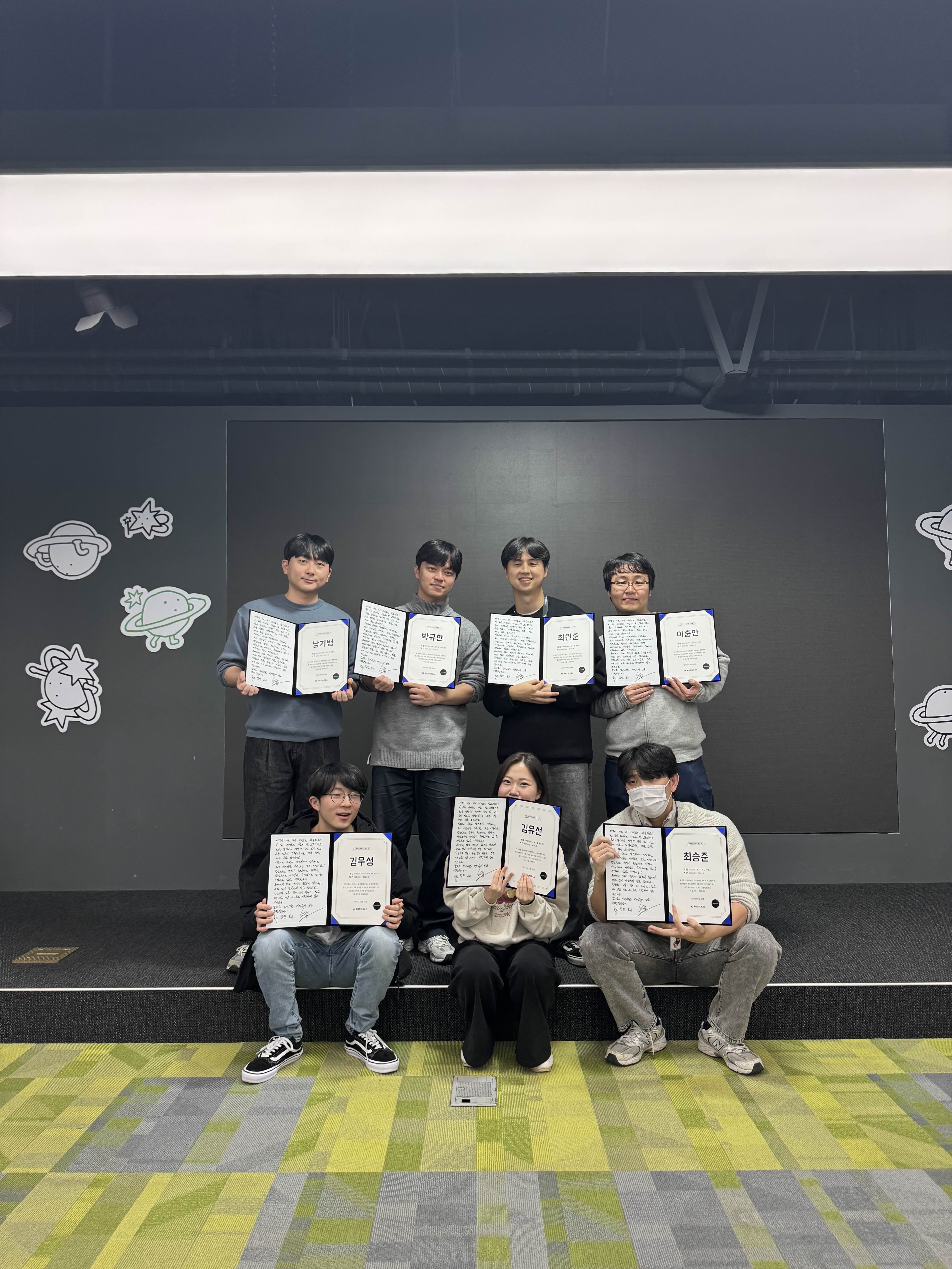 크루원들과 스터디를 통해 서로의 부족한 부분을 채워나갈 수 있었다. 혼자였다면 이렇게 하지 못했을 것 같았지만 함께여서 가능했고 정말 좋은 사람들을 많이 만나고 가는 것 같아 행복했다.