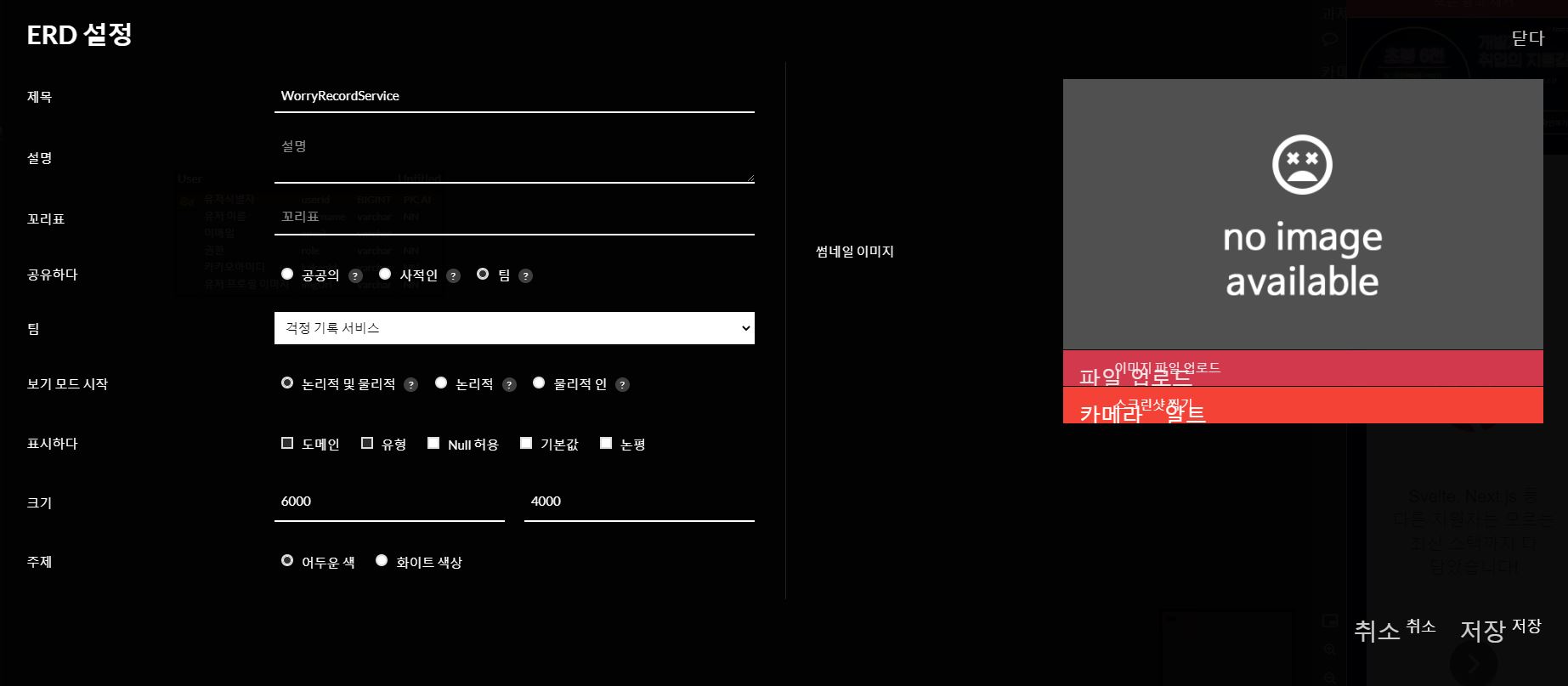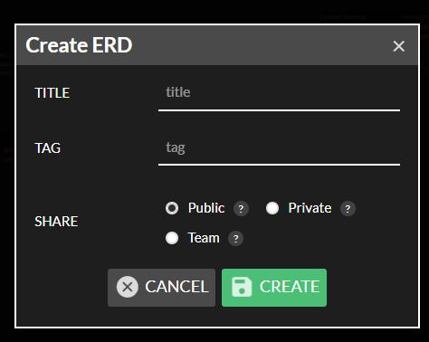ERD 생성을 하게 되면 제목, 태그, 공유 형태를 지정할 수 있다.