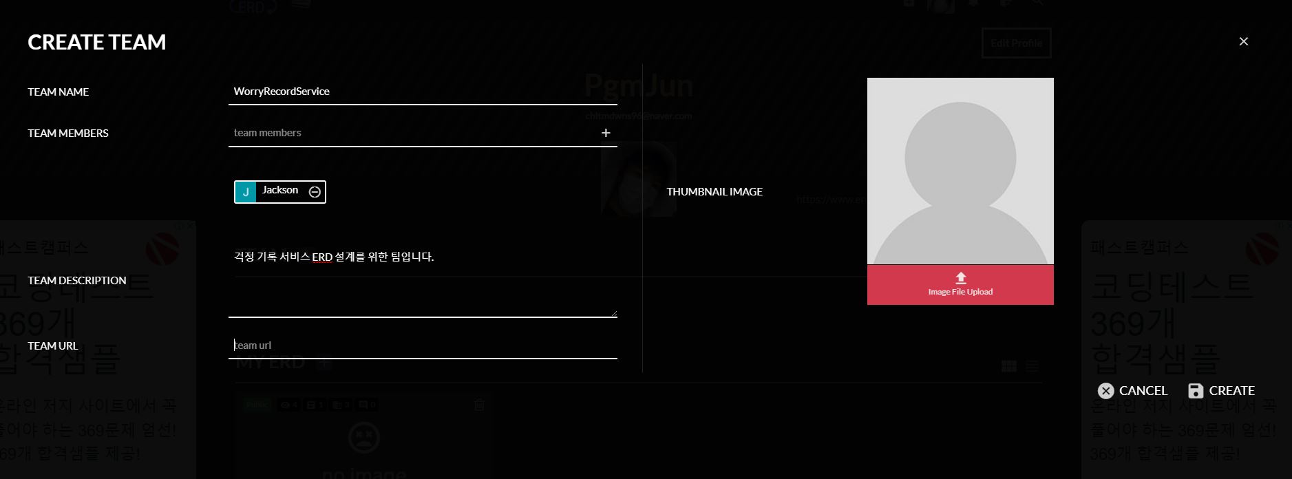 Team 생성을 하게 되면 이런 화면이 나타나는데 여기서 입력해야 할 것은