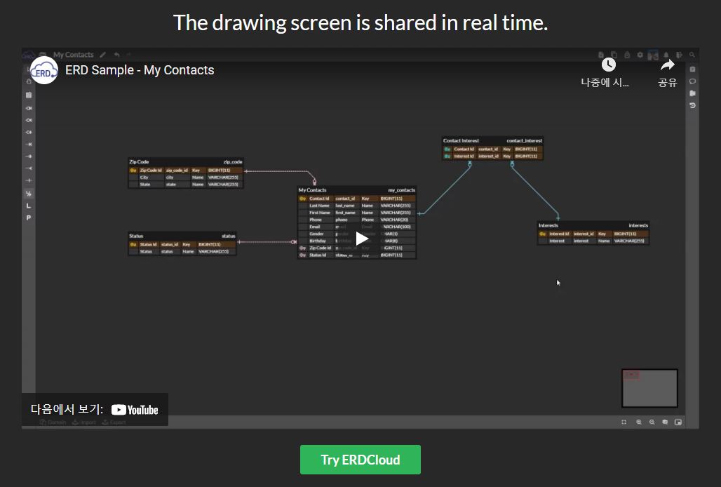 이번 프로젝트 팀원 분께서 ERD cloud라는 ERD 모델링 도구를 추천해주셔서 포스팅하게 되었습니다.