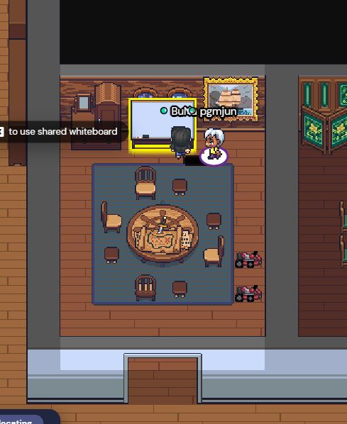 맵의 내부에 스터디룸이 또 따로 있습니다. 스터디 공간에 들어가면 다른 마이크의 소리를 듣지 못합니다.