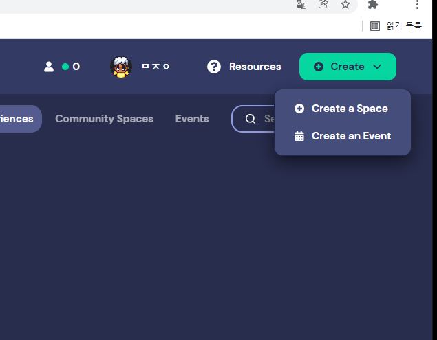 오른쪽 상단에 있는 'Create' 버튼을 통해 방을 생성할 수 있습니다.