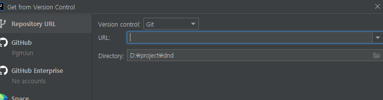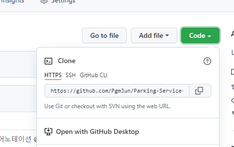 로컬도 생성해주어야 하니 HTTPS 링크를 copy하여 인텔리제이에 붙여넣어줍니다.