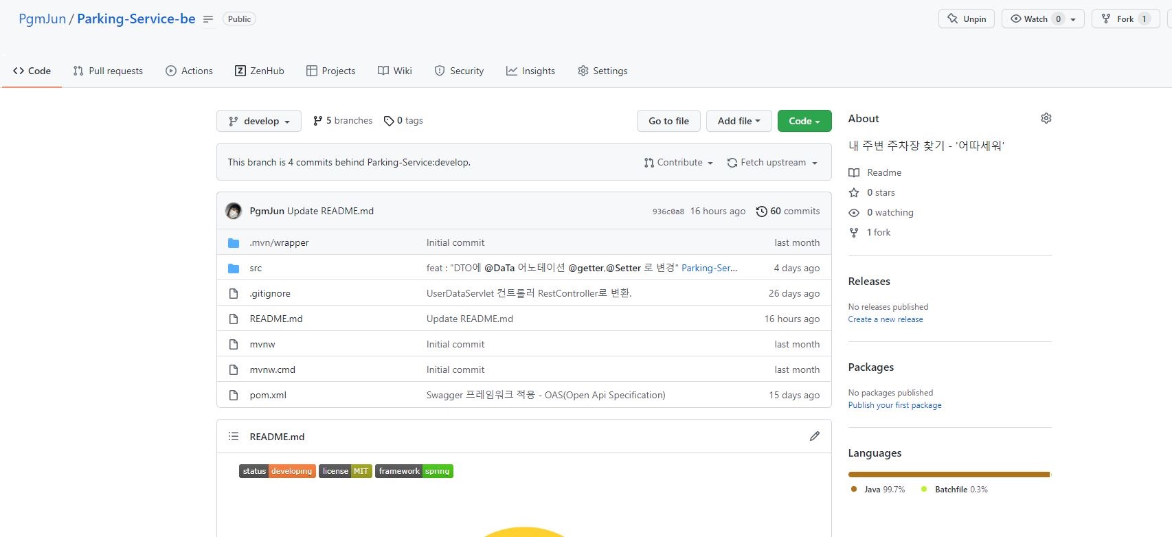 보통 origin 이라고 부르는 제가 생성하여 관리하는 레퍼지토리입니다.