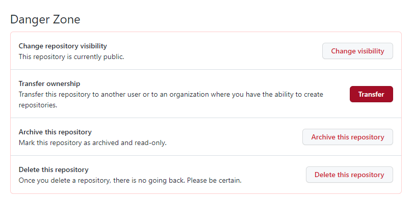 여기 보이는 Danger Zone 에서 Transfer 버튼을 누릅니다.