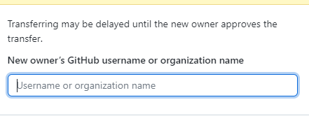 그리고 위의 입력칸에 organization name을 기입하면 레퍼지토리가 해당 organization으로 넘어가게 됩니다.